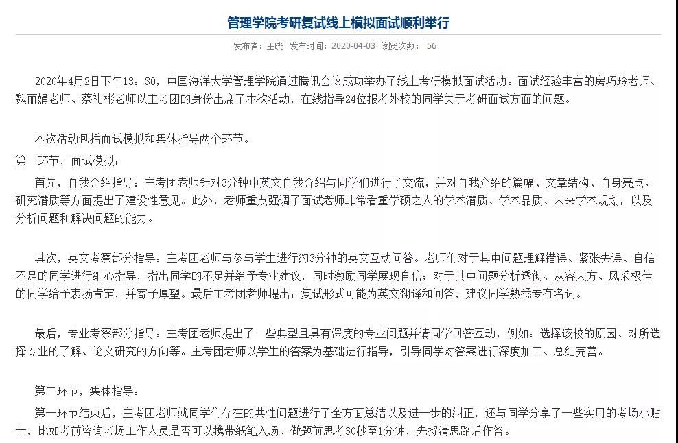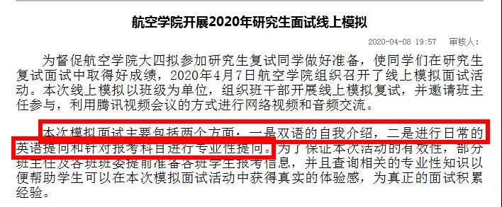 今年由于疫情各個院校的復(fù)試安排還沒有出來,所以今年考研復(fù)試到底是線上面試還是線下面試目前還沒有確定答案,但是近期部分院校對該院考生進(jìn)行了線上模擬面試,這樣可以做好兩手準(zhǔn)備!