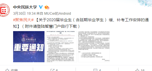 近期,中央民族大學發布了2020屆畢業生緩、補考工作安排的通知(如圖)。要求學生: