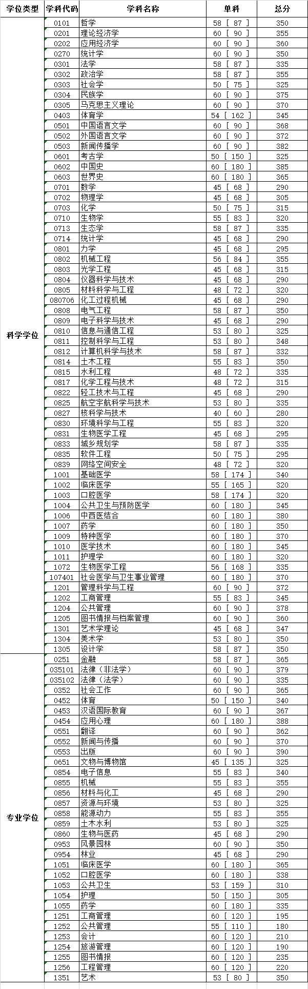四川大學(xué)2020年碩士研究生入學(xué)考試初試合格線