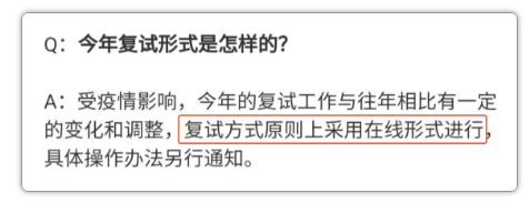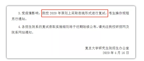 盡管目前很多院校尚未公布確定的復試形式,都一概表示“等教育部通知”,但有兩所考研院校在出分的同時也對復試形式做了說明,基本上線上復試無疑了!!!