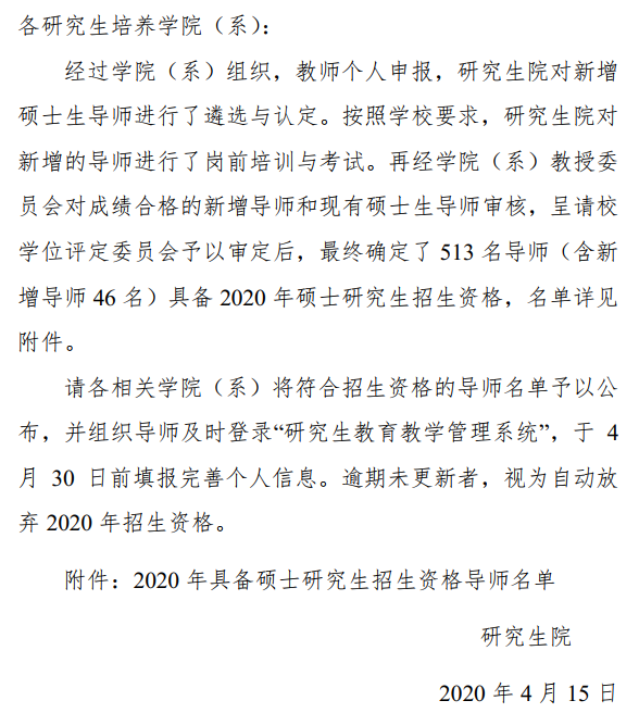 西安石油大學(xué)研究生院2020年研究生招生導(dǎo)師名單通知