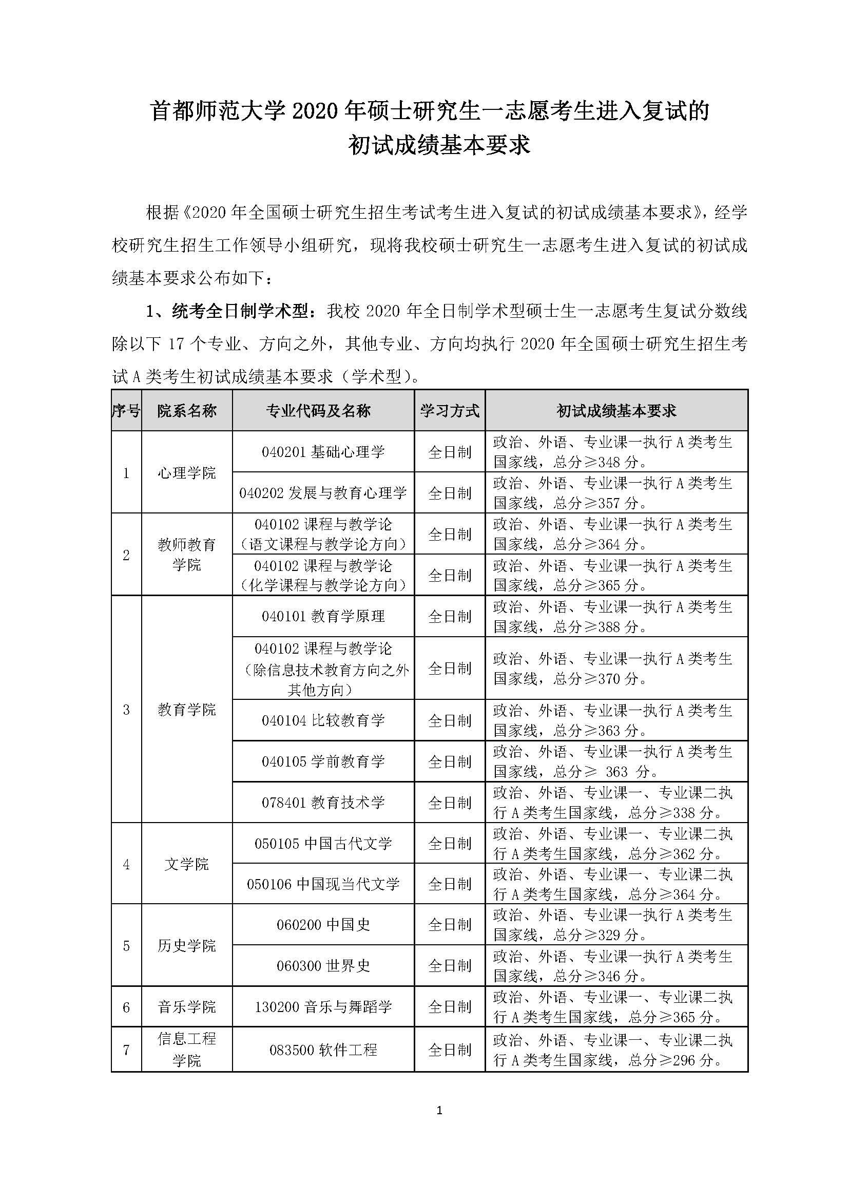 根據《2020年全國碩士研究生招生考試考生進入復試的初試成績基本要求》,經學校研究生招生工作領導小組研究,現將我校碩士研究生一志愿考生進入復試的初試成績基本要求公布如下: