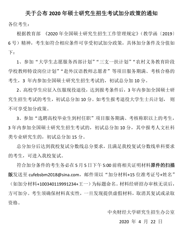 中央財經大學公布2020年碩士研究生招生考試復試分數線