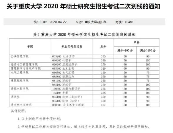 重慶大學最近公布了二次劃線通知: