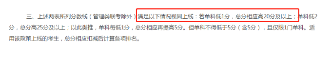 除管理類聯(lián)考外,若單科低1分,總分相應(yīng)高20分及以上;