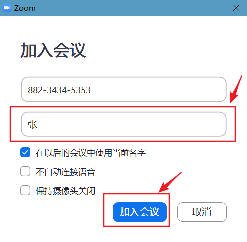 3.按照學院要求輸入參會姓名,點擊加入會議