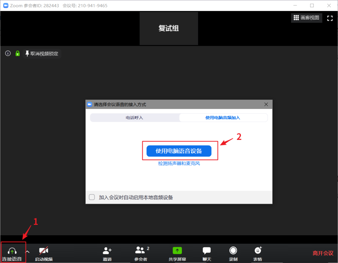 1.面試秘書邀請考生進入復試考場后,考生須點擊左下角連接語音