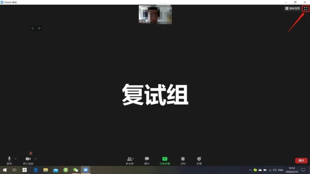 4.按照復試組要求完成整個復試過程,整個過程須保持畫面為全屏模式,點擊右上角進入全屏