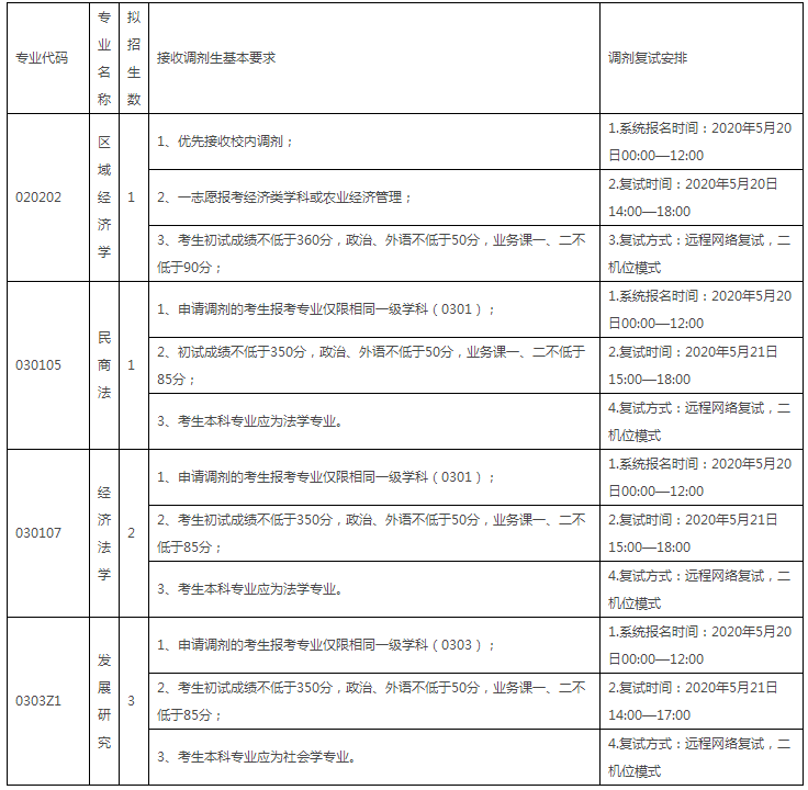 中國農業大學區域經濟學、民商法學、經濟法學、發展研究專業調劑系統報名時間:5月20日00點-12點,每次開放持續時間不低于12個小時。