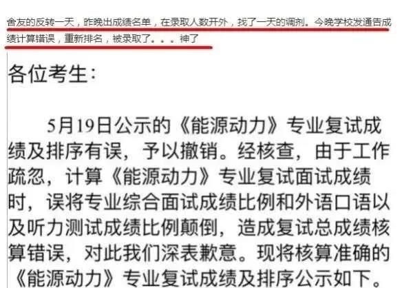 某同學原本一志愿遺憾被刷,但是隔天又收到了擬錄取通知!