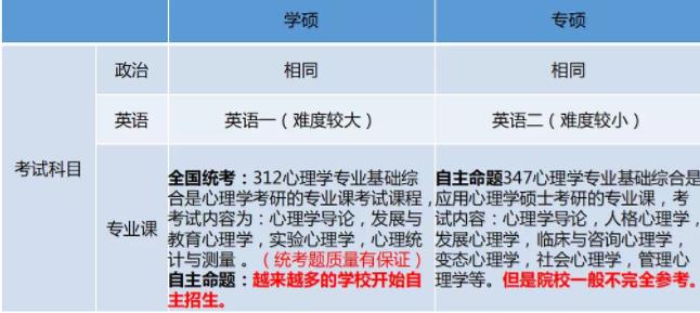1.學(xué)術(shù)碩士:統(tǒng)考和自主命題。方向:基礎(chǔ)心理學(xué)、發(fā)展與教育心理學(xué)、應(yīng)用心理學(xué),考博方便。學(xué)碩可以調(diào)劑到專碩,專碩不能調(diào)劑到學(xué)碩(一般不可以跨調(diào),除非特殊情況)。每個(gè)方向的分?jǐn)?shù)線不同,一般來說應(yīng)用和發(fā)展心理學(xué)方向更為熱門,分?jǐn)?shù)較高,而基礎(chǔ)方向相對(duì)分?jǐn)?shù)較低。