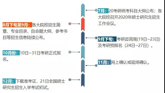 2019年已經進入下半年,考研也迎來了復習的下半場。下圖是今年下半年的重要時間點,希望同學們根據這些時間節點合理安排自己的復習計劃!
