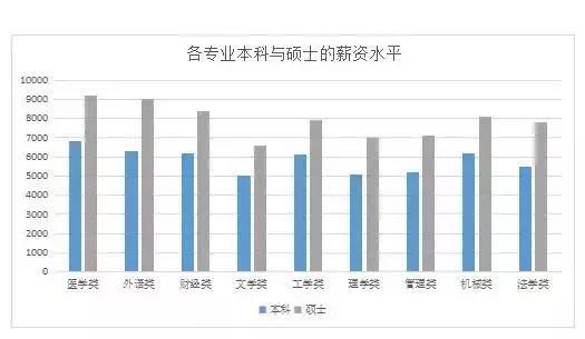 來看看各專業(yè)本碩平均薪資水平對比表: