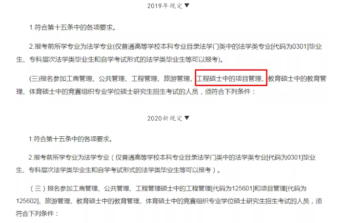 在報(bào)考條件里對(duì)工作年限有要求的學(xué)科,去掉了工程碩士中的項(xiàng)目管理。