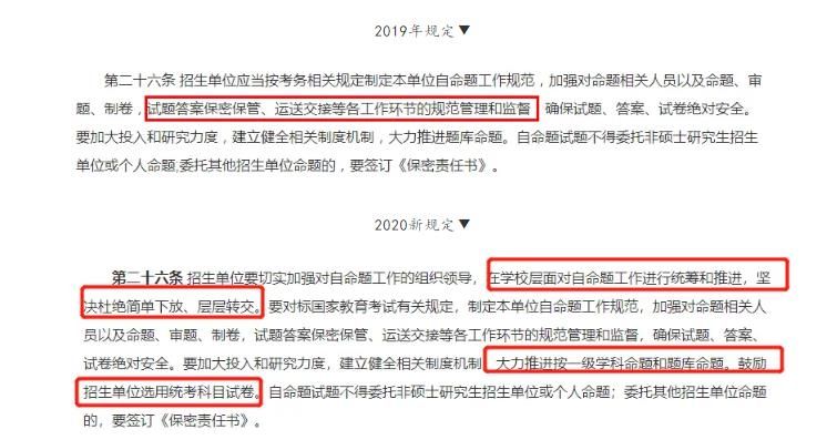 因此今年的命題工作會(huì)更加的嚴(yán)格,《規(guī)定》強(qiáng)調(diào)命題工作必須在學(xué)校層面進(jìn)行,杜絕下放和層層轉(zhuǎn)交,最大可能地避免中間環(huán)節(jié)出問題,更加充分保證考研的公平。