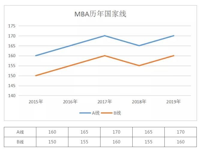 近5年來的MBA國家線的波動在10分以內,但整體的趨勢來看,是在上升的。尤其近3年來,國家線都在165~170之間。預計2020年國家線會在170上下浮動。不過國家線即便是上漲,也是比較好過的,只要你認真準備就行。