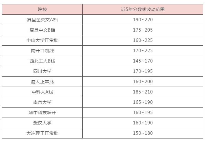 這類院校從近5年的分數線來看,總體波動稍微有點大,波動幅度在25分以上。