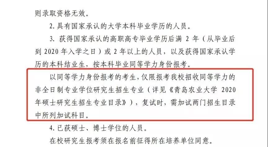 比起淮北師范大學來說,青島農業大學限制看似降低了一些,但是情況完全不是這樣,很多考生自己感興趣的專業或者學校比較熱門的專業考生無法報考,只能報考同等學力非全日制專業學位研究生招生專業。被區別對待,不舒服。