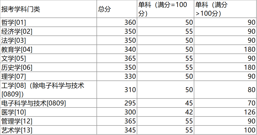 1.以上為考生進入我校復試的初試成績基本要求,各學院可根據招生計劃、生源情況、學科專業特點等,向上調整復試分數線。