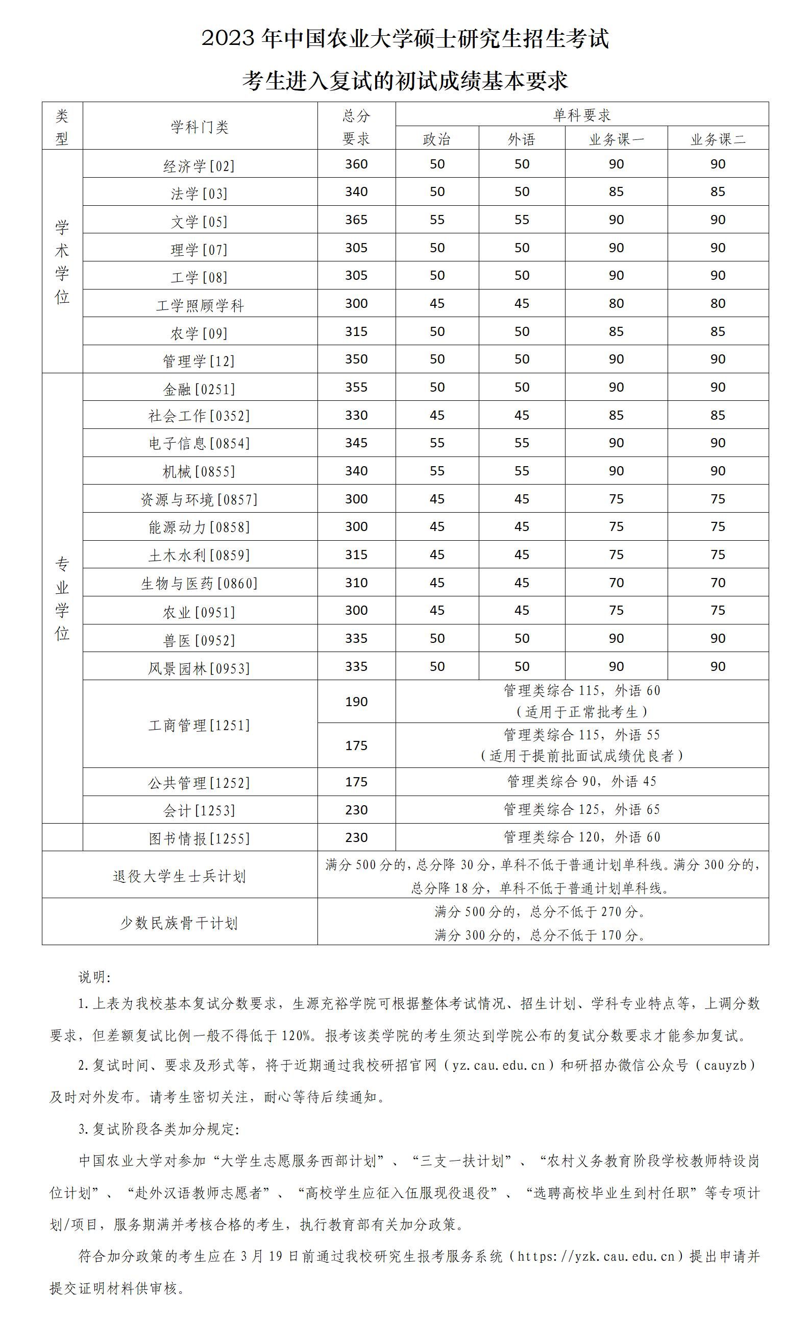 2023年中國農(nóng)業(yè)大學(xué)碩士研究生招生考試考生進入復(fù)試的初試