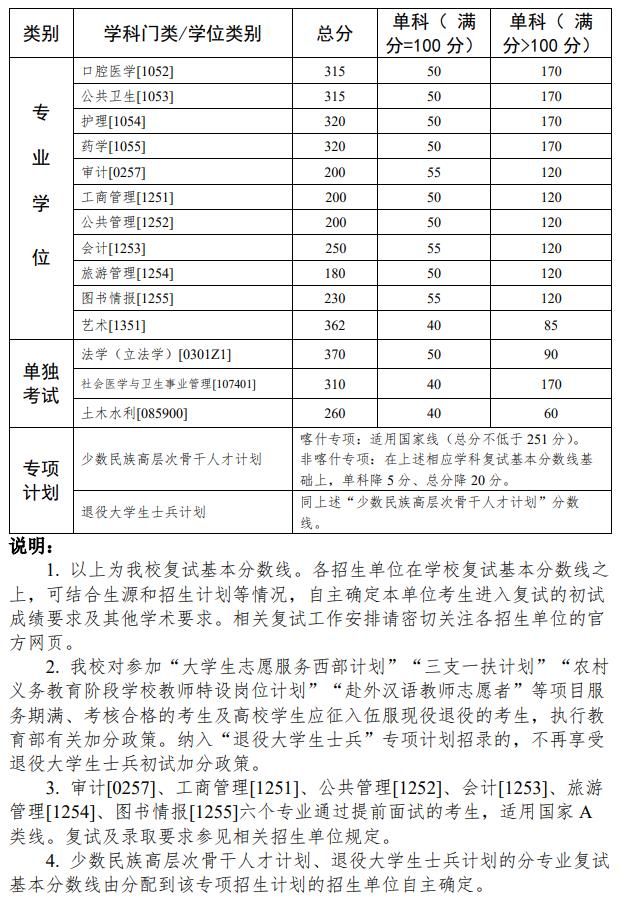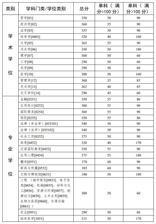 中山大學 2023 年碩士研究生招生考試復試基本分數線