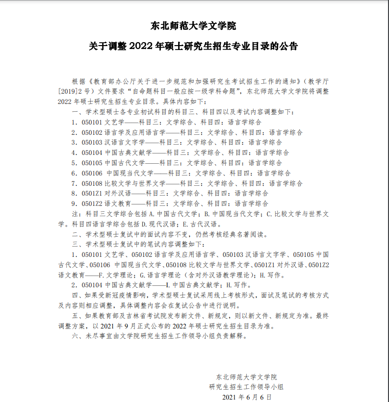 :東北師范大學文學院2022年碩士研究生招生專業目錄