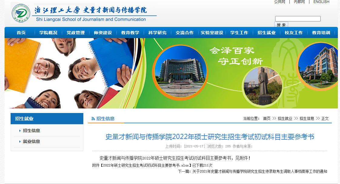 史量才新聞與傳播學院2022年碩士研究生招生考試初試科目主要參考書,見附件!