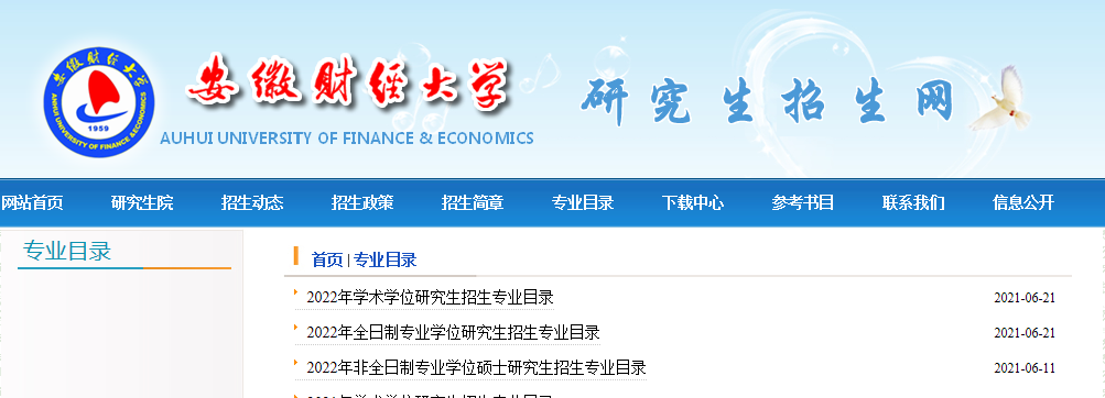 安徽財經(jīng)大學2022年非全日制專業(yè)學位碩士研究生招生目錄已公布,請各位考生詳細閱讀。