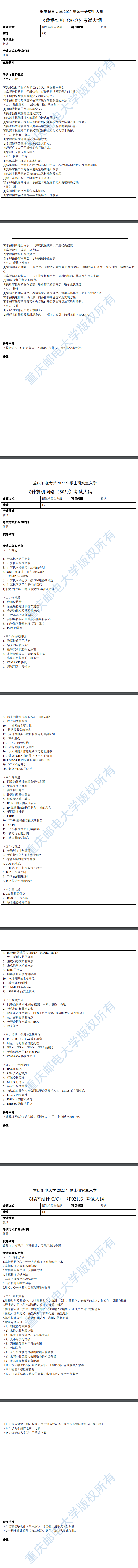 今天為大家介紹的是,重慶郵電大學2022年計算機科學與技術學院考試科目參考書目。