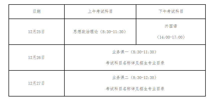 2.2022年全國碩士研究生招生考試初試時間為:2021年12月25日-27日(三天)