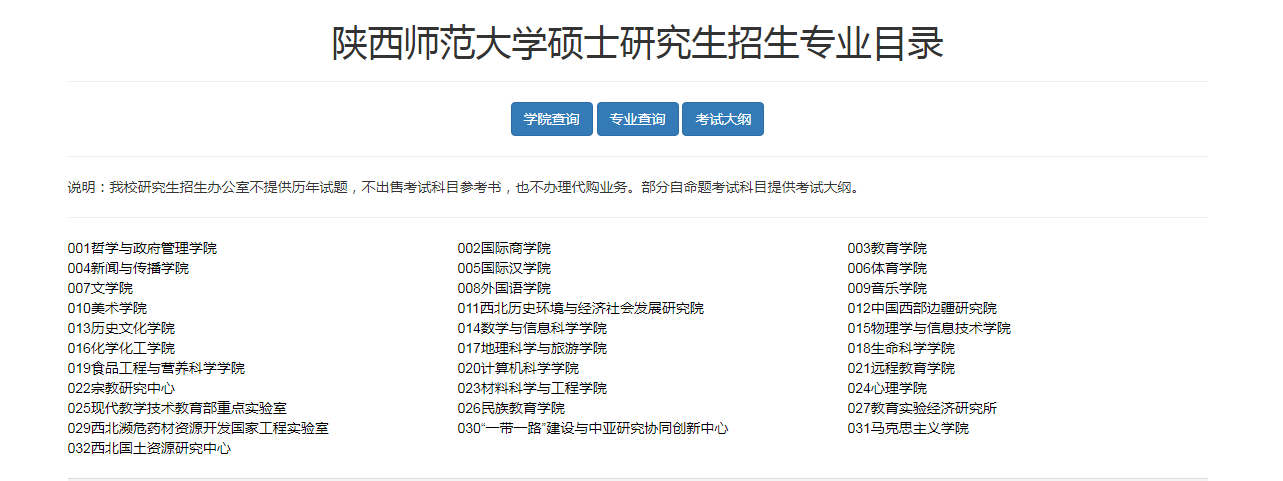 陜西師范大學(xué)碩士研究生招生專業(yè)目錄
