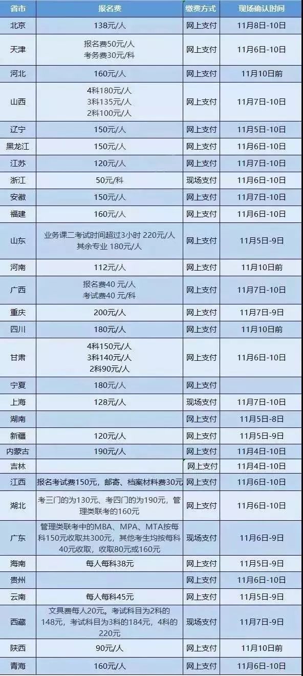 以下是各省市2019考研報名費及現場確認時間,以及現場確認的一些注意事項,建議收藏備用,希望對小伙伴們有幫助。