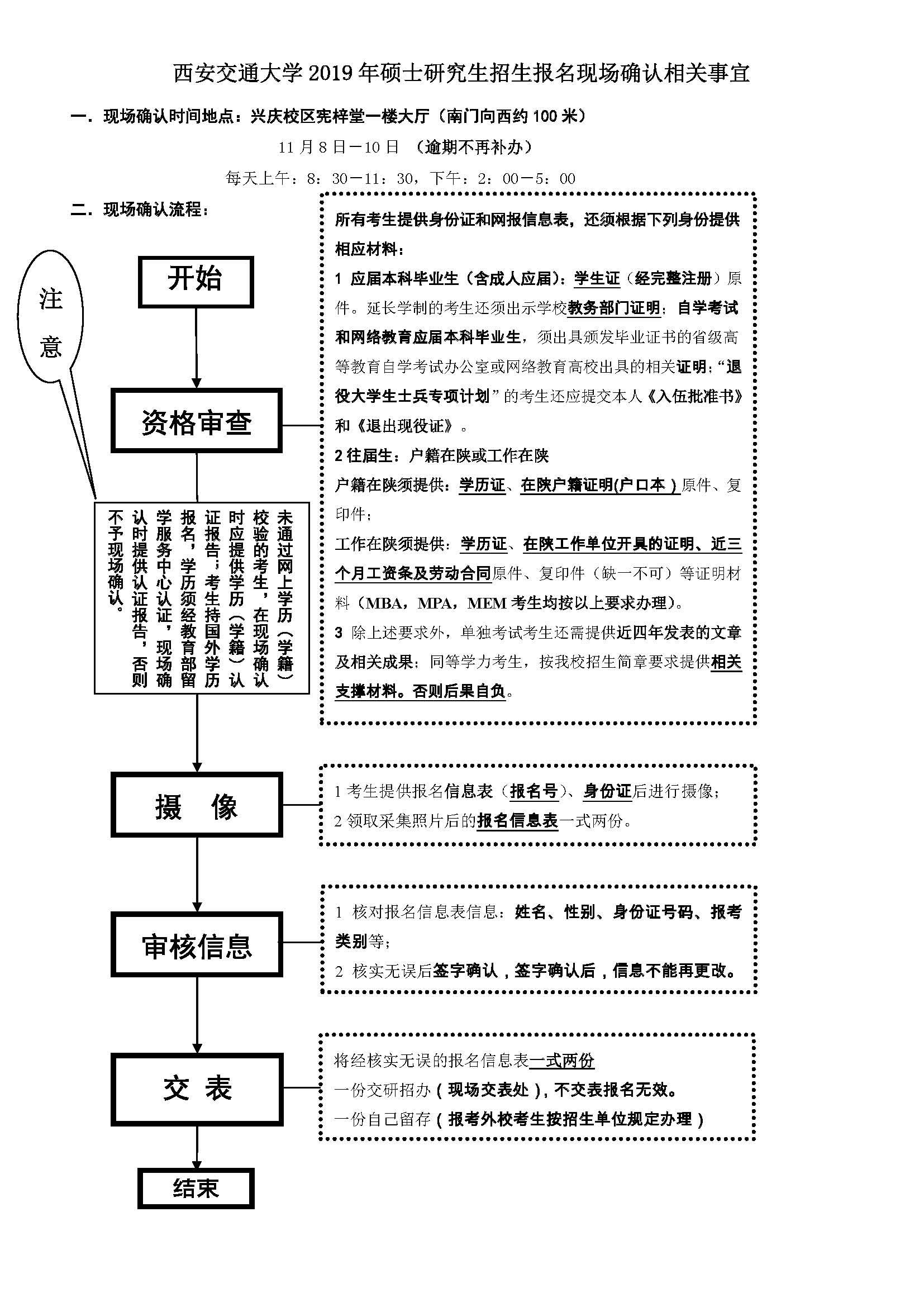 2019年全國(guó)碩士研究生招生考試初試時(shí)間為2018年12月22日至12月23日。網(wǎng)上報(bào)名時(shí)間為2018年10月10日至10月31日,預(yù)報(bào)名時(shí)間為2018年9月24日至9月27日,今天陜西文都考研總部小編給大家整理了關(guān)于西安交通大學(xué) 2019 年碩士研究生招生報(bào)名現(xiàn)場(chǎng)確認(rèn)相關(guān)事宜的知識(shí)點(diǎn),如有需要及時(shí)加入陜西文都19考研交流群。