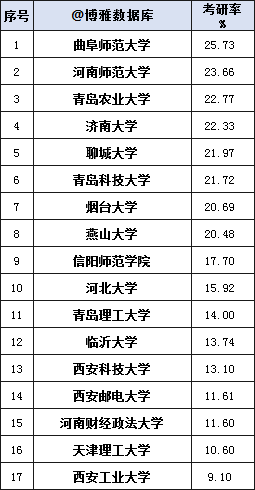 青島農業大學的考研率,超過知名度較高的考研神校濟南大學、聊城大學,排名第三。