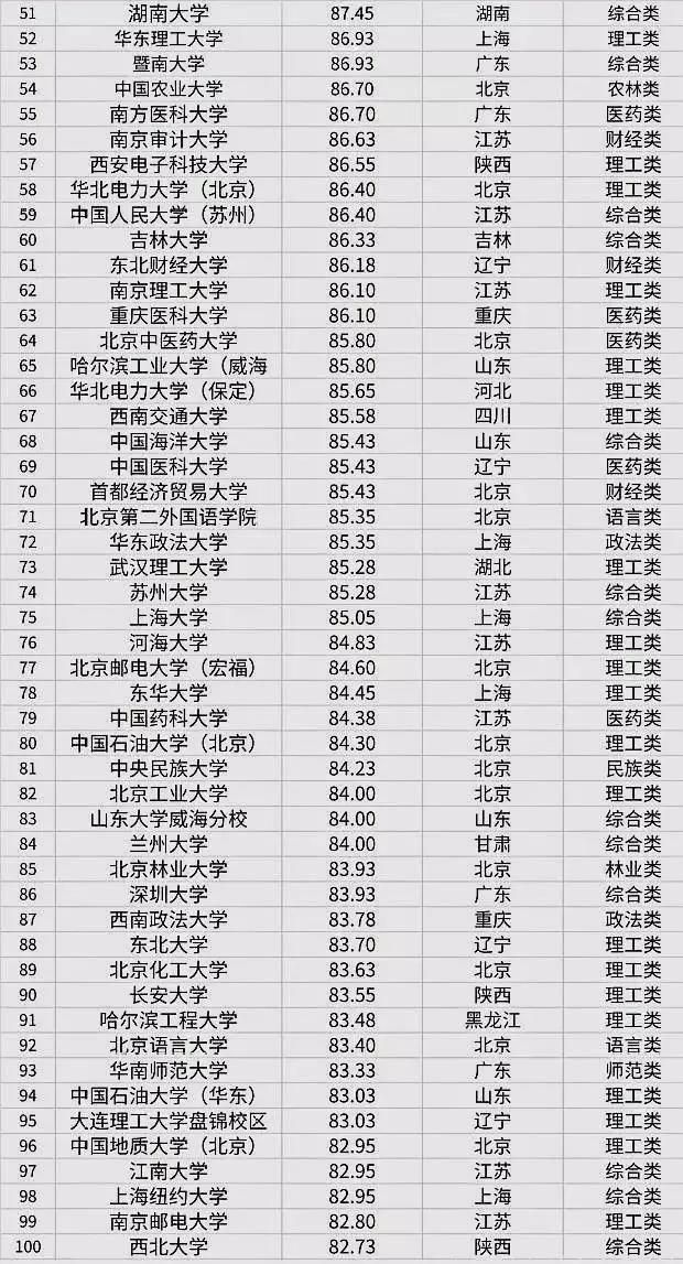 第51至100名的高校