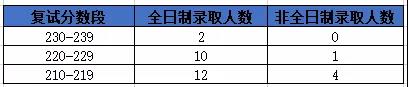 一志愿全日制與非全日制共參加復(fù)試155人。第一批全日制錄取24人,非全日制錄取5人;全日制錄取初試最高分237分,最低分210分;非全日制錄取初試最高分220分,最低分210分。