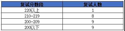 復試分數線190分,一志愿參加復試27人,錄取21人(名單未提供初試分數),復試錄取比為1.29;復試最高分222,最低分192。