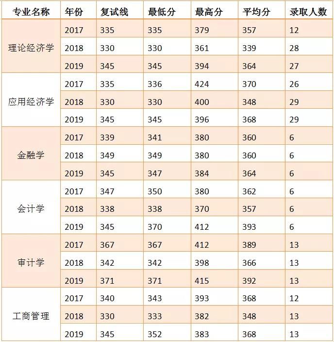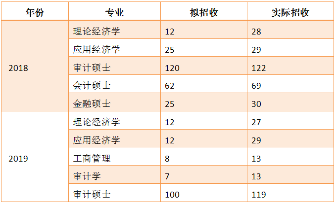 南審近兩年經濟學擴招比較多,理論經濟學2019年的統招人數有27人,應用經濟學2019年統招人數29人,對比2018年人數變化都不是很大,復試線一般都是國家線,但是大部分同學的收分也達到部分211學校的分數。