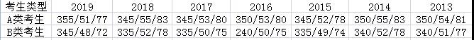 注1:表格中的分?jǐn)?shù)線表示:總分分?jǐn)?shù)線/單科滿分100分的科目分?jǐn)?shù)線/單科滿分為150的科目分?jǐn)?shù)線