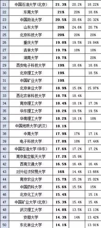 根據往年的數據,或許只有清華的保研率能超過這一數字;中國科學技術大學的保研率高達38.8%,上海交通大學、復旦大學、同濟大學、浙江大學、西北工業大學等高校保研率也較高,超過了25%。