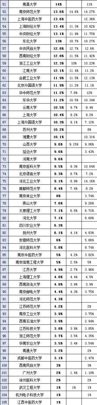 ?中國藥科大學、南京師范大學具有經教育部備案的國家基礎學科人才培養和科學研究基地班,因此保研率超過10%。