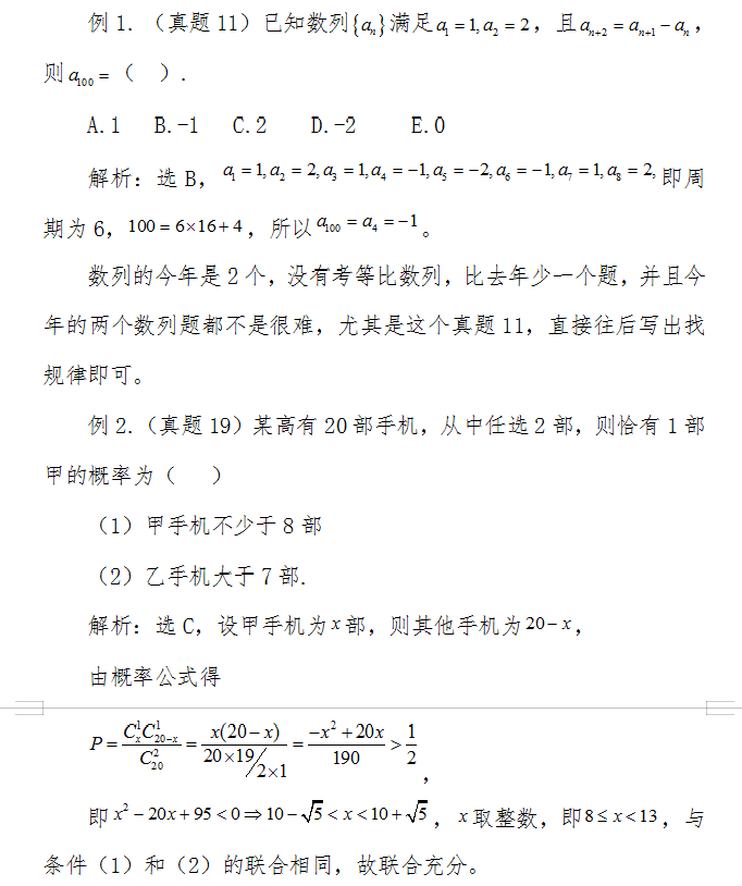 今年的數據分析題一共5個,其中概率題一共3個,出現的比例相對往年較高,其中真題19就是其中一個,跟方程不等式結合在一起,多一個計算的步驟,相對兩外兩題來說,稍微麻煩一些,但如果我們對于函數方程不等式的內容掌握的比較好的話,拿下這個題應該不是什么問題。