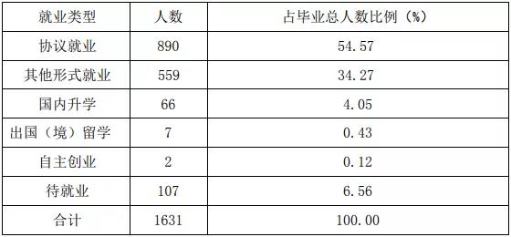 2017屆畢業研究生共有1631人。其中,碩士研究生1600人,占畢業研究生總數98.10%,研究生就業率高達93.44%,其中協議就業占比54.58,其他形式就業34.27%。