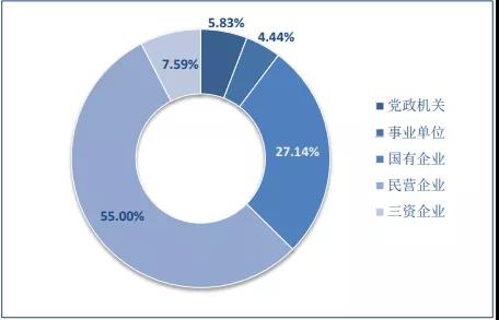 2017屆畢業生就業單位主要以民營企業和國有企業為主,分別占畢業生就業總數的55%和27.14%。