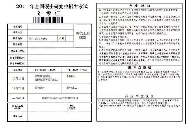 去年考前一周,考生可憑網報用戶名和密碼登錄“研招網”自行下載打印《準考證》?!稖士甲C》使用A4幅面白紙打印,正、反兩面在使用期間不得涂改。考生憑下載打印的《準考證》及有效居民身份證參加初試和復試。