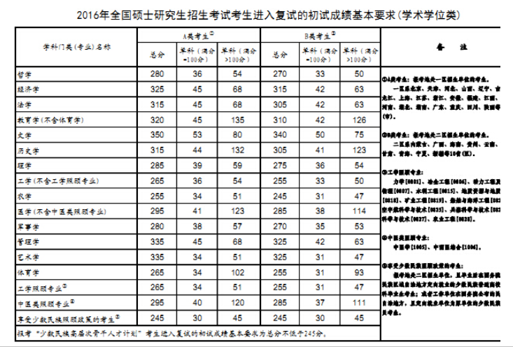 2016考研國家線(學碩)