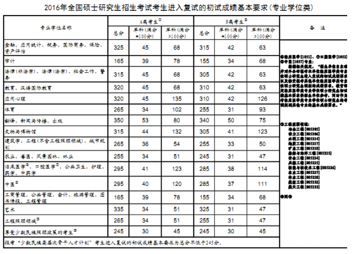 2016考研國家線(專碩)