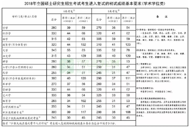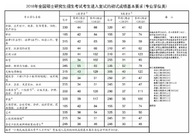 2018考研國家線(專碩)