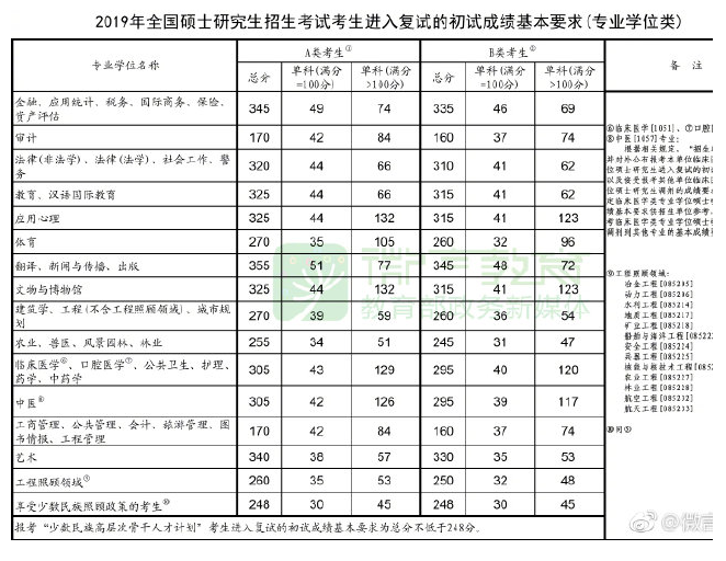 2019考研國家線(專碩)