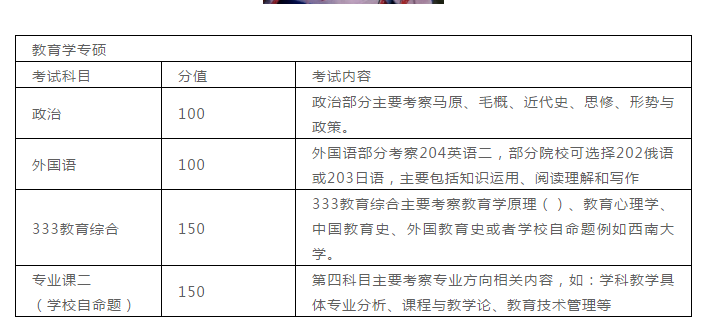 教育學專碩:2010年開始全國聯考,專業課為各院校自主命題。